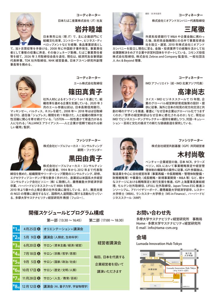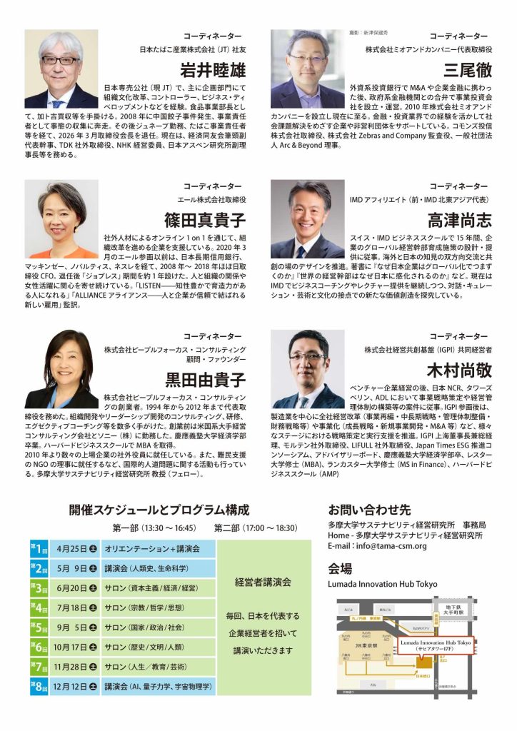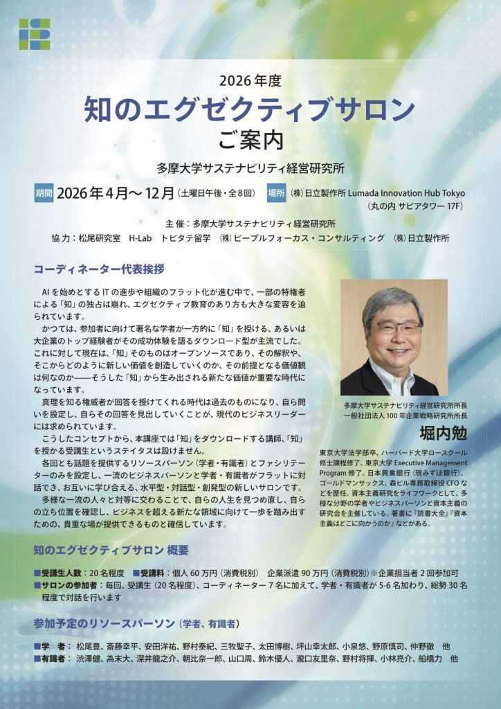 お問い合わせ:多摩大学サステナビリティ経営研究所 事務局