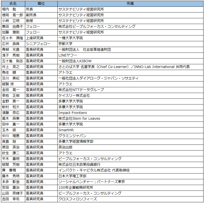 多摩大学サステナビリティ経営研究所は、ソーシャル・ファイナンスに関する多様な専門家を客員研究員としてお招きし、様々な分野で調査・研究やコンサルティング、セミナー・研修などを行っています。客員研究員の活動にご関心がある方は、こちらからお問い合わせください。 客員研究員・五十音順
